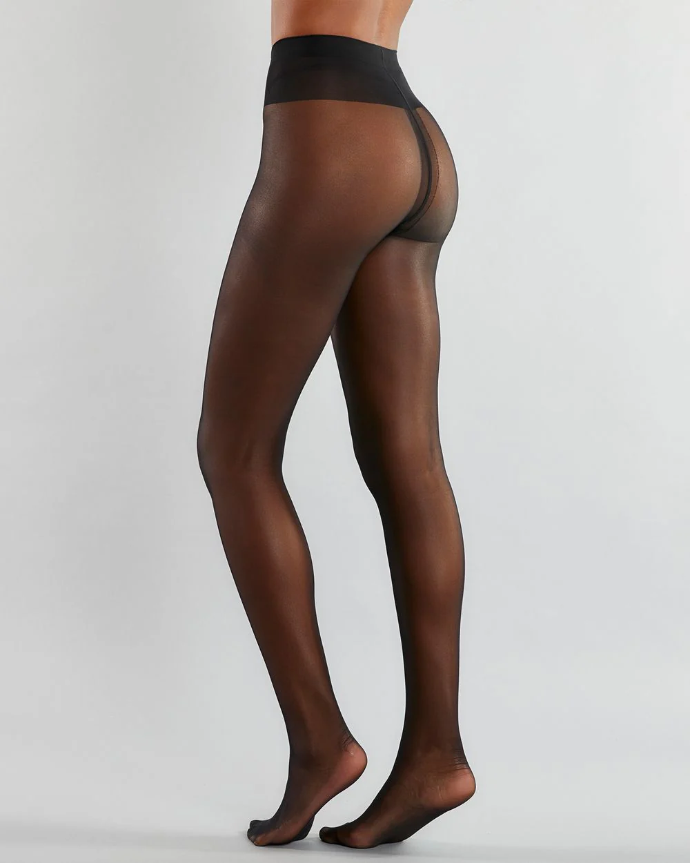 The silky smooth feel of these sheer, supple, firming and shaping stockings are classically lovely. The number 10 in the name refers to the thread count, so these tights are just about as sheer as you can get, with an exceptionally smooth look. Sewn together with a high-rise waistband that offers support while wearing.